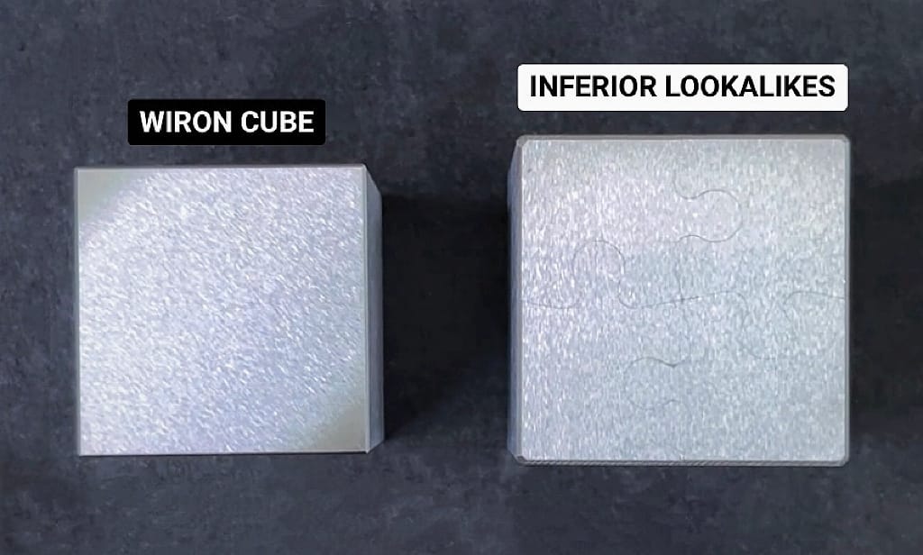 The Wiron Cube® is distinguished by its unparalleled precision, achieved through advanced EDM wire cutting. While this technique is renowned for its accuracy, true excellence demands a comprehensive understanding of complex variables. Our expert handling guarantees that each piece features finely crafted edges and nearly invisible seams, creating a level of quality and artistry that sets our product apart in a market filled with lookalikes.
